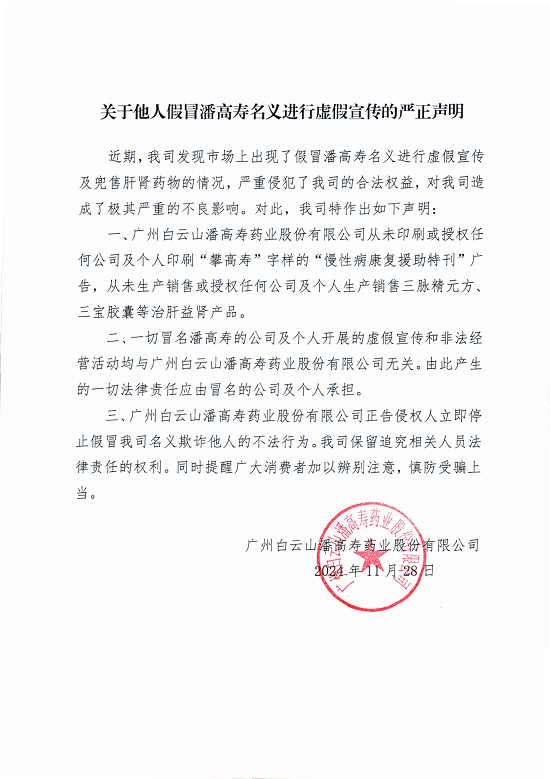 基本信息:廣州白云山潘高壽藥業(yè)股份有限公司(下簡稱“白云山潘高壽”)前身是廣州潘
