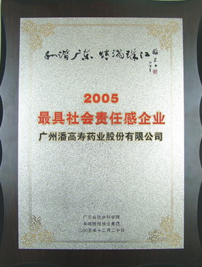 05年底,我司榮獲由羊城晚報報業集團和廣東省社會科學院聯合舉辦的“和諧廣東,情滿珠江”最具社會責任感企業榮譽稱號。廣州潘高壽藥業股份有限公司是廣藥集團的骨干企業之一。去年3月,魏大華總經理接手后,僅僅用了一年時間就扭轉形勢,生產經營指標全線飄紅,多項經濟指標增幅均列廣藥集團第一。多年來,公司熱心社會公益文化事業。關愛助扶貧困地區、送醫贈藥,不計其數,屢獲殊榮。