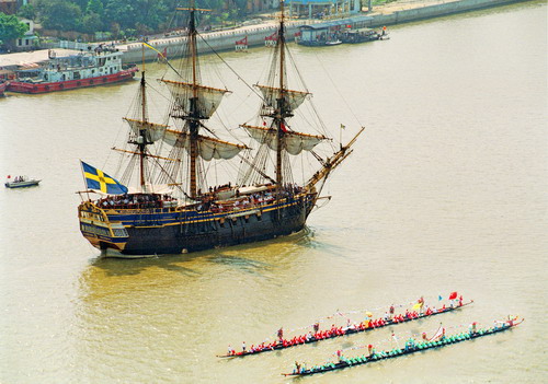 帆舞東方,繼往開來——盛夏,一艘18世紀德仿古商船(經十年打造),歷盡艱辛,跨越四大洲、三大洋,歷時9個多月,重走海上絲綢之路,再次蒞臨,羊城為之傾情。它是來自瑞典的歌德堡號,來自261年前的遙遠時空。它見證了輝煌,承載著夢想。可知,前緣可再續,因果有循環。而歷史在我們的腳下不斷延伸,豈可虛度。在生命的長河里,讓我們永遠揚起“歌德堡號”的風帆吧!乘風破浪,駛向理想的彼岸!