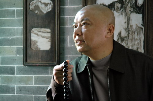 “大隱隱于市”。他常躲進“小樓成一統”(可以一、兩個月足不出戶)。在耕硯堂里手撥著念珠坐禪般地在明式的紫檀官帽椅上“默以養真”(篆刻章語),去覺悟心中的佛。漸漸人也變得“佛頭佛腦”,崇尚“大象無形”、“大美無言”之境界。怪不得他的畫沒有脂粉氣,乍看并不入眼,卻貴在似與不似之間。我曾自恃當年學畫比他早(當年他家還掛我的畫),對他的畫妄加評論,而他多是笑而不答。“誰享靜中緣”。以后方漸有所悟。他的畫不花俏,要靜心才看到妙著。急功近利、浮躁者是領悟不到、品味不出的。原來欣賞之樂還得先有一個嫻靜與明凈的心境。