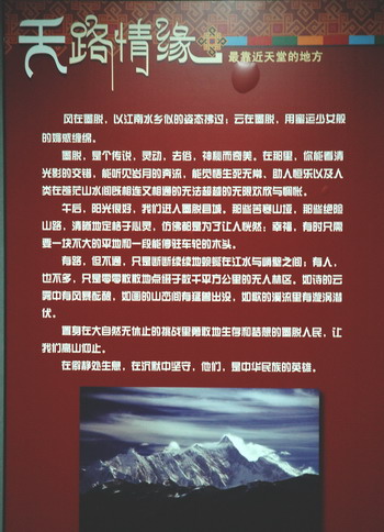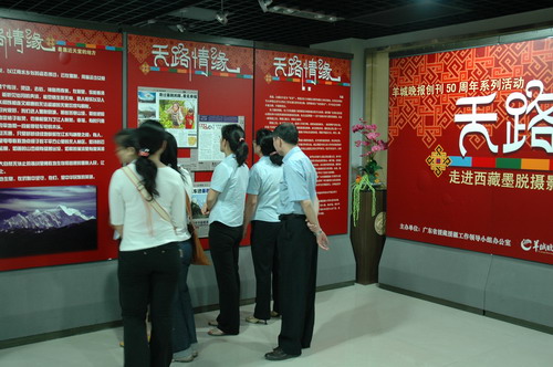 一張張精彩、一聲聲感喟——這里是“蓮花盛開的圣地”。這里的山水土地記錄著人們戰(zhàn)天斗地的史跡與情懷……這是由廣東省援藏工作領(lǐng)導(dǎo)小組辦公室、羊城晚報(bào)報(bào)業(yè)集團(tuán)主辦以及廣藥集團(tuán)、越秀區(qū)文化局協(xié)辦的主題為“天路情緣”的走進(jìn)西藏墨脫的攝影圖片展所展現(xiàn)的景象。近百?gòu)垐D片生動(dòng)、真實(shí)地記錄下廣東送醫(yī)送藥愛心團(tuán)隊(duì)以及中央組織部的新聞采訪團(tuán)走進(jìn)林芝地區(qū)、走進(jìn)墨脫的艱苦行程。那里有廣藥集團(tuán)奉獻(xiàn)愛心的義舉。同時(shí)看到援藏干部模范許曉珠的戰(zhàn)斗身影與不凡業(yè)績(jī)。