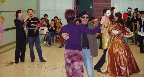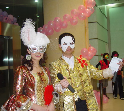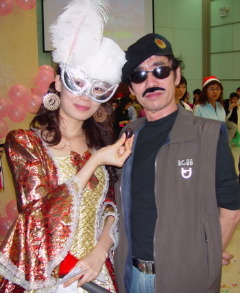 綜合樓大廳早已用1000個粉紅粉紫色的氣球裝點,仿佛婚禮般喜慶。晚會以神秘的“僵尸版羅密歐和朱麗葉”開場,成功帶領(lǐng)大家進(jìn)入化裝舞會的世界。這里有精彩的口琴合奏、情深款款的歌唱,眾人捧腹的小品,還穿插了活潑搞笑的游戲。大家載歌載舞,歡聚一堂。在評選最受歡迎造型男、女主角環(huán)節(jié),鄭書記獲得最受歡迎女主角大獎,亮哥獲得最受歡迎男主角大獎,可謂實至名歸。鄭書記以優(yōu)美的歌聲征服了現(xiàn)場所有人,還友情客串了小品《小話西游》中的女兒國國王!亮哥的大猩猩造型和口琴、葫蘆絲表演令大家耳目一新!