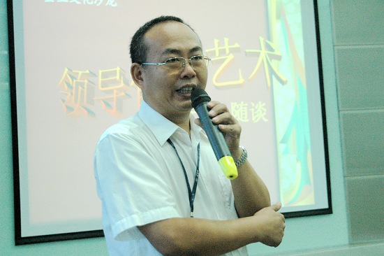 每節開頭通過投影,用案例作引導(國慶大閱兵、“亮劍”、“激情燃燒的歲月”等片段都派上用場)。“領導們”暢所欲言,真知灼見,每有啟發。胡燕副總經理講領導權力不能濫用。要有品德、有修養、讓人心悅誠服。且為官者要有擔當,肯為下屬排難解憂。葉總監談到手指頭理論,每個(下屬)都是獨立的個體,有特定的作用,無分貴賤,應協調加以使用。正如,張偉祥副總經理所談,本無廢物(人),有的是放錯了地方的資源,可見每個員工(下屬)都有其長處、優點。“管理從心開始”。身為領導要影響他人去實現既定的目標,大的方面當然要靠企業文化的內在推動力,靠愿景指引,讓人有奔頭與成就感。而實際管理中最有效的莫過于能打動人心,善于溝通交流。這就看領導者的品行與魅力了。對此,魏大華董事長總經理與鄭楠黨委書記在第四節感言中就與大家分享了他們的經驗。鄭書記談了三點:1、做事先做人。以身作則至要。2、虛懷若谷。以誠待人,強調應保持良好的領導作風與工作作風,密切聯系群眾。3、是領導藝術。要“三多三少”——“多你少我、多贊少貶、多聽少說”。魏總著重談了德才兼備,以德為先話題。要有大局意識,認同企業的大目標,養成良好的合作態度,形成合力。認同在集體中營造批評與自我批評的氛圍。做事不拘形式,關鍵看成效結果……
