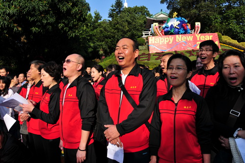 2011年元旦,陽光明媚,在白云山山頂公園、在摩星之巔,潘高壽班子成員和全體員工在這里振臂高呼,放聲歌唱。廣藥集團董事長、黨委書記楊榮明,副總經理施少斌等集團領導親臨,鼓勁打氣,引吭高歌,喜迎新年。