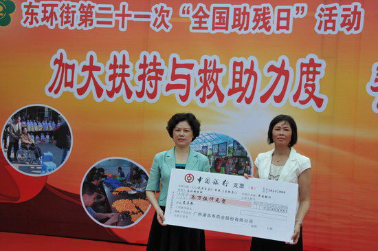 活動(dòng)內(nèi)容豐富——捐贈(zèng)儀式、文藝表演、助殘義診等等,無(wú)不感人肺腑。潘高壽等公司弘揚(yáng)濟(jì)人濟(jì)世、關(guān)愛(ài)社會(huì)的精神,向殘疾人奉獻(xiàn)愛(ài)心。鄭楠黨委書記代表公司向東環(huán)街殘聯(lián)捐贈(zèng)了價(jià)值3.5萬(wàn)元的保健品和飲料。同時(shí),東環(huán)街殘聯(lián)回贈(zèng)由該區(qū)殘疾人親手制作的禮花。此外,鄭書記參觀了東環(huán)街康園工療站,與殘疾人親切交談,送上暖暖的關(guān)愛(ài)慰問(wèn)之情。