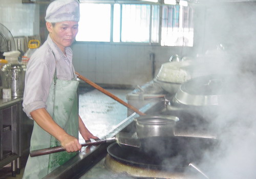 為此,他們嚴把食物進貨關。每天不少于三人,對定點供應來的食物。同時查核QS相關合格證。從而保證了蔬菜禽畜的鮮活;、米、油、鹽、醬的純正。近30年沒有發生過一次食物中毒事故。此外,他們不圖省事,購熟食,都買新鮮的回來再細加工。諸如炸魚、燜鴨、白切雞、鹵水蛋等。為員工的胃口頗費心思,以三名廚師為主,大家都想方設法改進烹調技藝。做到夏之清淡,卻不失營養;冬之濃郁,而不會過火。以至吃的多樣,吃得快樂,吃出健康。