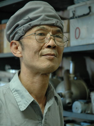 “修了又修,改來改去,總舍不得換新的,節(jié)省了又不是自己獲利,車間得益,唉……”胡家歡說起他的師傅來是“又愛又恨”。20年同事了,最“怕”跟他修機。他總是不厭其煩,一修到底,能修好的決不換新。曾用兩臺舊機(報廢)拆裝重整為一臺新的貼招機應急,因此節(jié)省約20萬元。他長年對機械的揣摩與實踐練就一手修機的絕活,對諸“疑難雜癥”,他總能“妙手回春”,原來與他“備戰(zhàn)備荒”有關。他平日愛到廢品倉尋寶,備好大量還有價值的機件。確信那句名言:“無所謂廢物,有的是放錯了地方的資源”。“那么節(jié)省干啥,老頑固?!睂α餮运恍??!拔覀兪歉憔S修的,不是來‘換嘢’的!”他聲色俱厲,好一副“堅持節(jié)約鬧革命!”架勢。