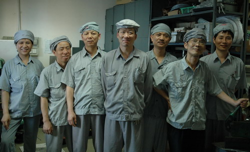 “他是‘機佬’,總愛與機器為伴,說的少,做的多”馮國達工會小組長倜侃說。一個人的幸福、快樂莫過于有一份合乎自己興趣的工作。潘師傅找到了,所以他工作并快樂著。就算假日也愛回廠義務勞動,自得其樂而不在乎名利。多年QC小組攻關是骨干,卻從不掛名,好讓年輕人冒尖。廿年工作何以樂此不疲? “其實做人至緊要是恰當定好位,還有培養(yǎng)興趣,從小做起……”他的樂觀感染著同事。那天訪問中大家自覺地圍攏七嘴八舌,分享見聞體會。好一個和諧而快樂的集體,看合照,那潘師傅依然手把著工具,似乎快樂地“工作”著(見圖)。